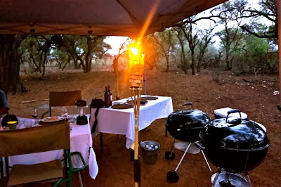 Here, there was a lovely surprise dinner amongst the trees — a proper South African braai and a four-course dinner ever so elegantly set in the wilderness.