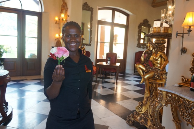 When we drove up to the front door, there was the hotel staff all ready to greet us, and with very welcome glasses of champagne to kick off a lovely stay.