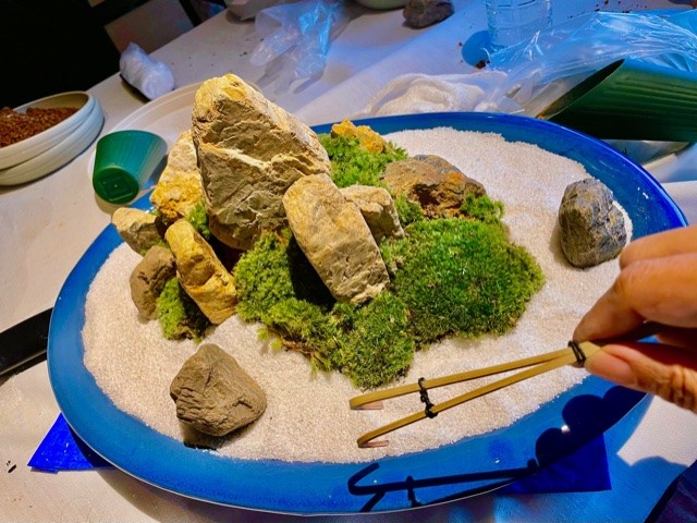 “After looking at some examples, please create something with your free thought,” Suzuki-san replied. “There is no correct or wrong way. Follow your inspiration to create your own world with mountains out of rocks, earth out of moss, and terrain out of white sand.”