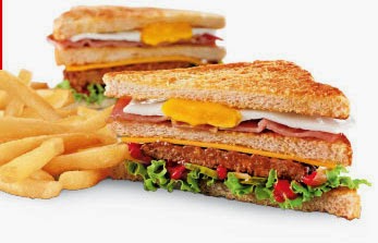 The other was something called a Dagwood, which was basically three slices of toast with a beef patty, bacon, cheese and lots of relish.