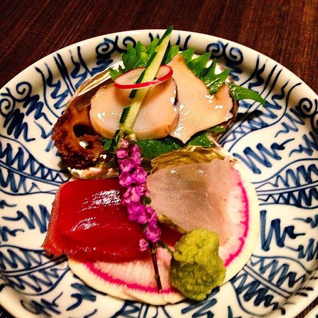 | Sashimi as one of the courses for a dinner in Hokkaido, living a Travelife |