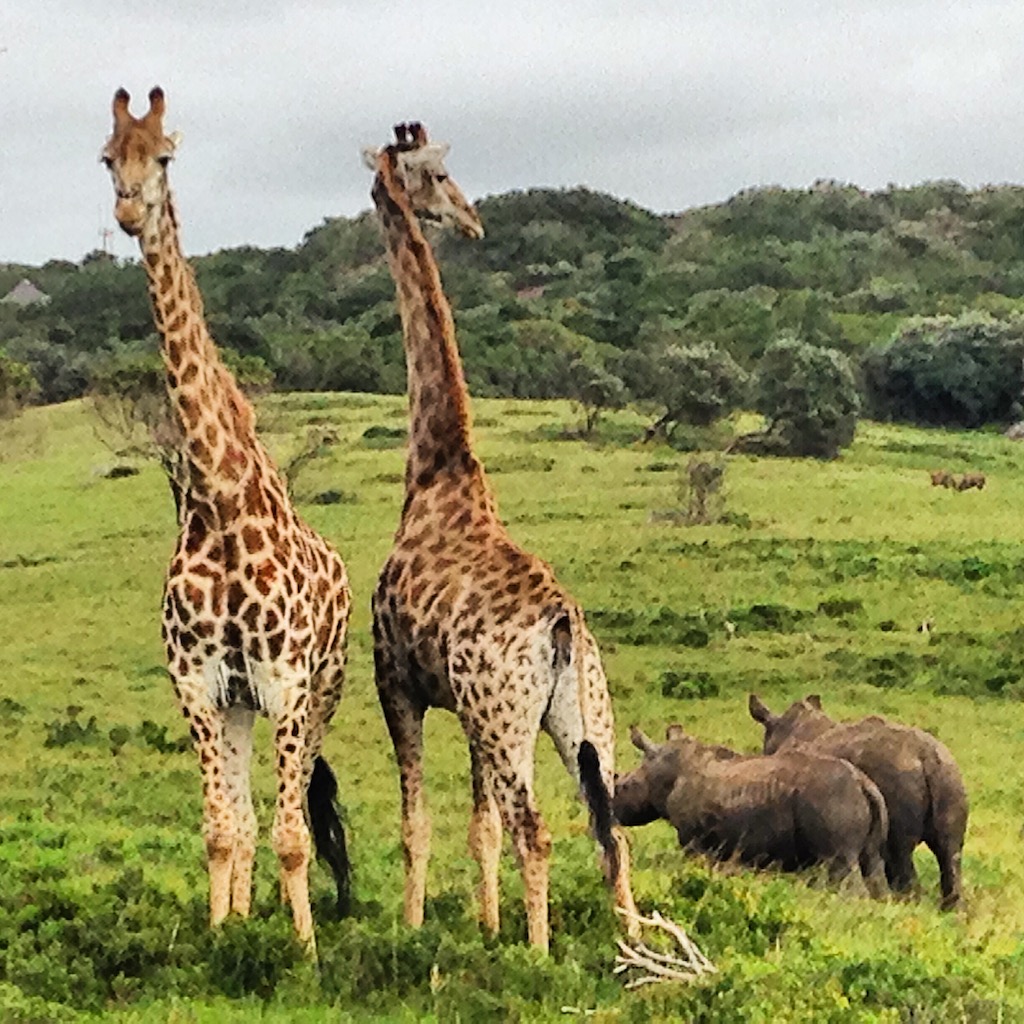 Giraffe, zebra and rhinoceros wander freely and happily, along with the usual